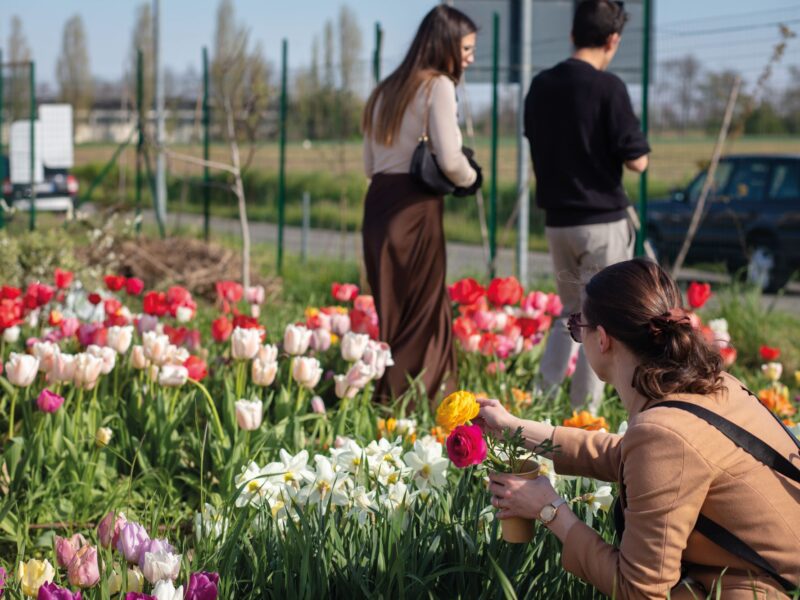 “La cena è fiorita!” è nata così, con l’idea di rallentare, mangiare bene e godersi la bellezza semplice di un tavolo lungo tra i filari, circondato da persone curiose e sorridenti.