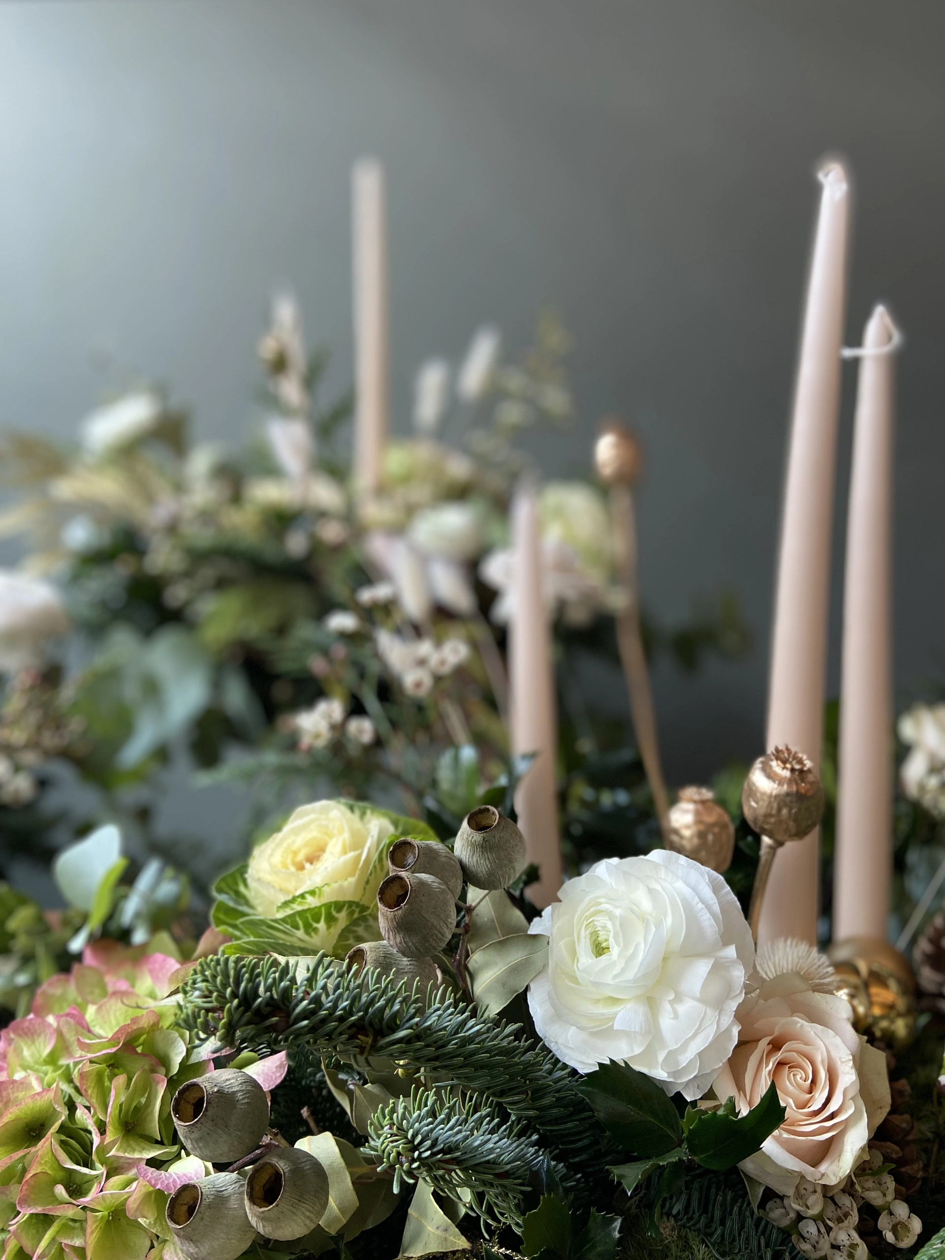 Un’elegante composizione natalizia realizzata con elementi naturali e dettagli tradizionali. Abbiamo scelto candele a stelo con cera di alta qualità e un mix di conifere profumate di resina. Perfetta per impreziosire la tavola delle feste, dona un’atmopsfera calda e accogliente grazie ai suoi colori classici e al design curato che puoi scegliere tra gli stili proposti. Ideale come raffinato regalo di Natale.