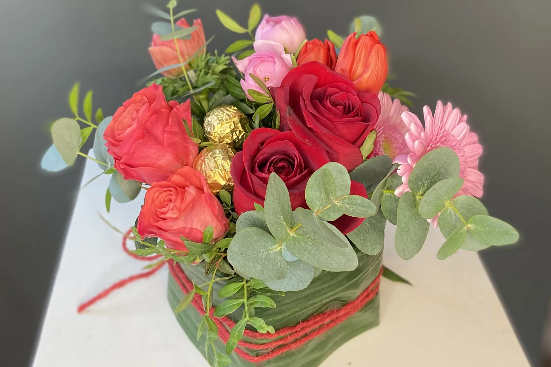 Il centrotavola perfetto per un San Valentino da WOW! Realizzato con rose rosse vellutate, simbolo dell’amore più intenso, ranuncoli rosa cipria, per un tocco di dolcezza raffinata, e anemoni bianchi, che portano un pizzico di eleganza moderna. A completare questa meraviglia, rametti di eucalipto profumato e un dettaglio dettaglio goloso (sono importanti tutti e cinque i sensi!) per creare un’atmosfera romantica da sogno. Ideale per una cena a lume di candela o per trasformare la tavola in un inno all’amore. 💕 Spoiler: farai colpo prima ancora che arrivi il dessert! 🍷✨